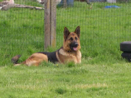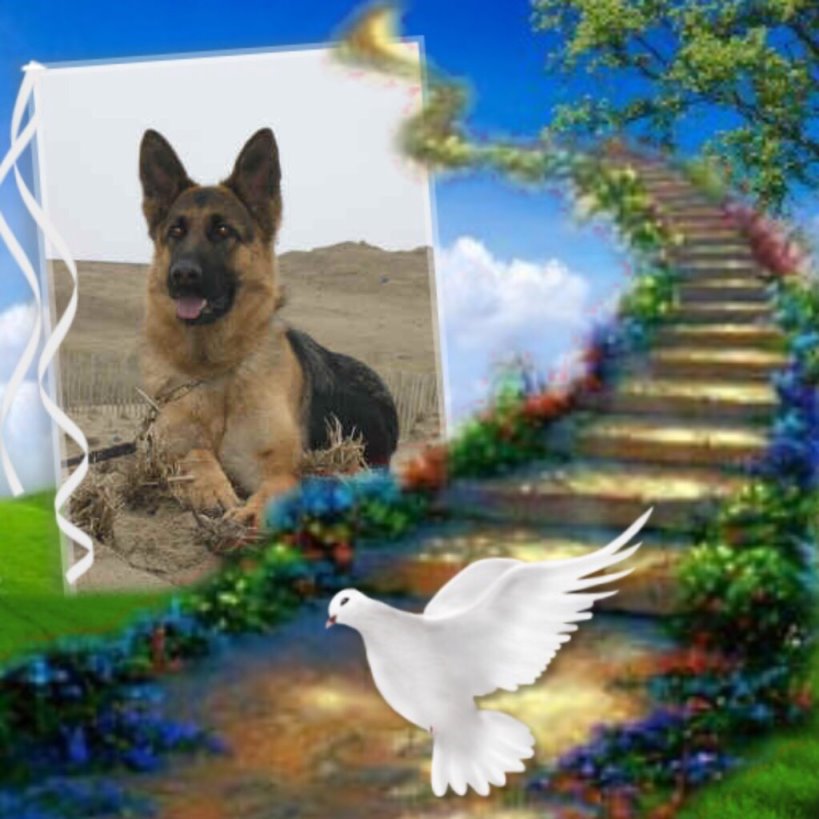 Dann kam ich zu Bärbels und Jürgens Freund Carl nach Belgien. Der Carl, seine Freundin und seine Eltern fanden mich echt toll und es gab auch gleich eine Hundefreundin - die Babsi. Carl hat mit mir weiter "gearbeitet" und ich habe auch da Pokale gewonnen und auch weiter Schutzdienst und Fährten gemacht. Carl war immer ein ganz toller Freund und wir haben uns gut verstanden. Bärbel war froh, das ich ein so tolles Zuhause gefunden habe. Ich habe auch Welpen bekommen - 12 auf einmal. Das war ganz toll. So gingen die Jahre dahin. Ich wurde älter und als es zu anstrengend wurde, habe ich bei Carls Eltern gewohnt und sie beschützt. Sie mochten mich auch ganz gerne und ich sie auch. In der letzten Zeit, ich war mittlerweile fast 13 Jahre alt, wurde mein Herz müde. Meine Leute haben alles getan was sie tun konnten, aber mein Herz wollte nicht mehr und so bin ich ganz friedlich am 11. Februar 2017 den Weg über die Regenbogenbrücke gegangen. Ich habe meine Leute geliebt und werde von oben auf sie auf passen. Eure Bayra vom Speichersee |