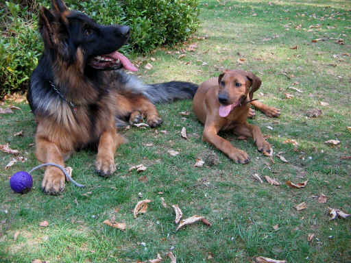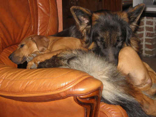 | Zeppos und sein neuer Freund Mokka ein Rhodesian Ridgeback | Zeppos beobachtet alles | Zeppos und Mokka machen es sich bequem |