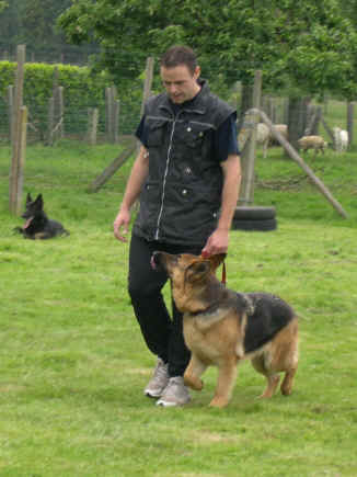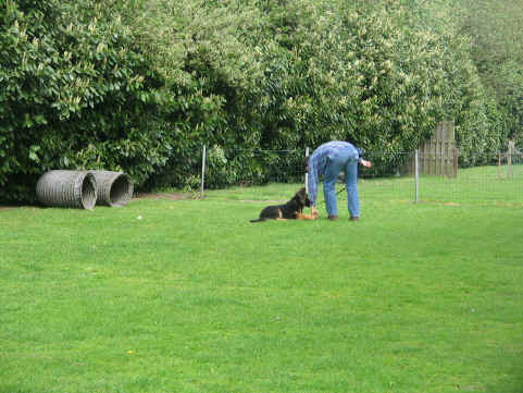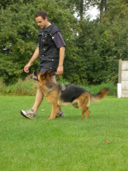 | das ist mein Herrchen Carl mit mir bei der UO | bin ganz aufmerksam | und hier beim Schutzdienst auf der belgischen Siegerzuchtschau |