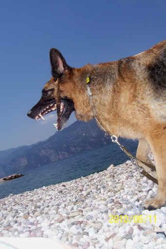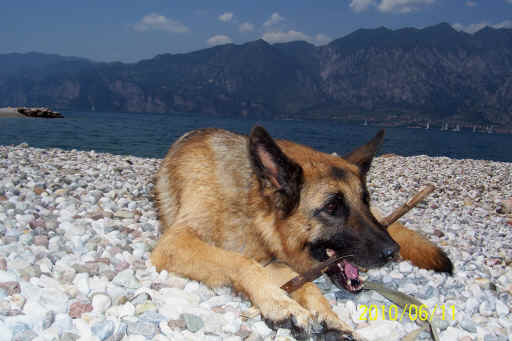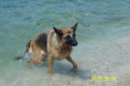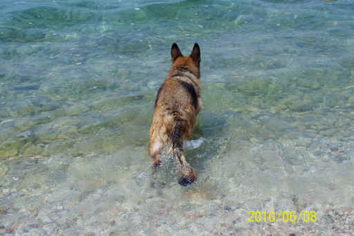 Herrchen Rene ein Stöckchen ins Wasser geworfen hat bin ich hinter her