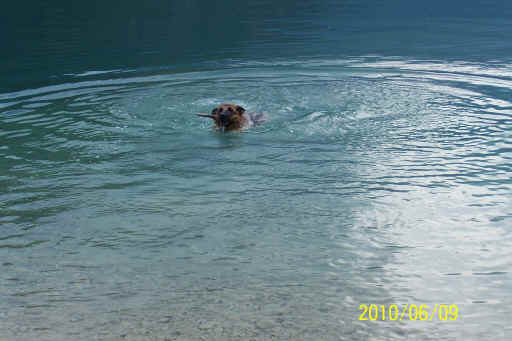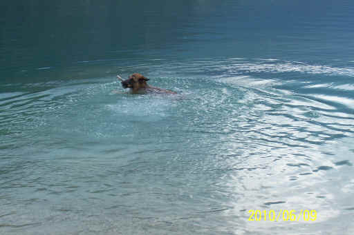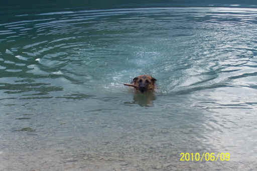 | hinein ins kühle schöne Naß | brrrr, bisschen kalt, aber echt toll | für mein Stöckchen schwimme ich sogar weit raus |