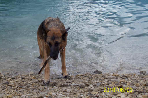 | und wenn ich es habe, bringe ich es zu Herrchen Rene zurück | gleich habe ich es geschafft | eben schnell das Wasser aus meinem Fell schütteln |