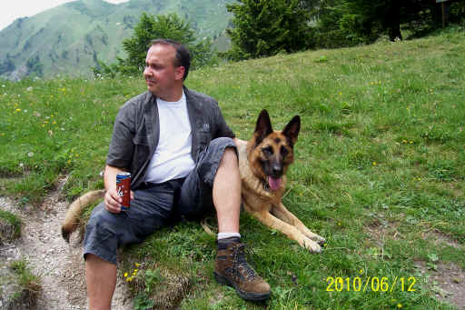 Wir sind natürlich auch Wandern gegangen. Da sind wir dann die Alm hoch gelaufen. War echt toll. Aber als wir dann wieder runter wollten, oh je, da kamen uns auf einmal ganz viele Ziegen entgegen, die auf die Alm getrieben wurden. Mein Herrchen meinte zu Bärbel: Für Brisby war das eine Begegnung der "Dritten Art". Na ja, ich hatte ja auch noch nie Ziegen gesehen. Aber Rene und ich habe das gut gemeistert. Die Ziegen haben alle überlebt :-) Hier im Urlaub war es auf jeden Fall sehr schön und ich freue mich schon auf den nächsten Urlaub mit meinen Leuten. Wenn Rene der Bärbel mal wieder Fotos schickt, kommen die natürlich wieder in meine Story. Bis zum nächsten Mal also, eure Brisby van Noort |