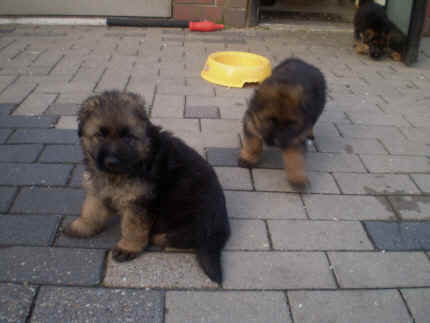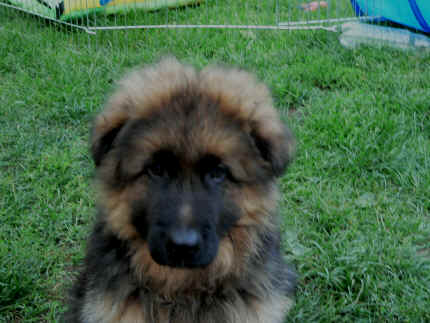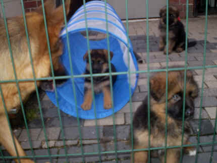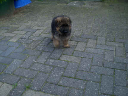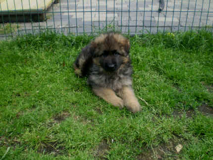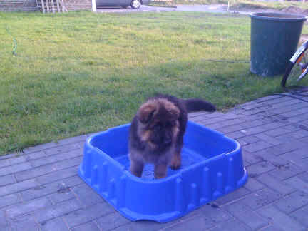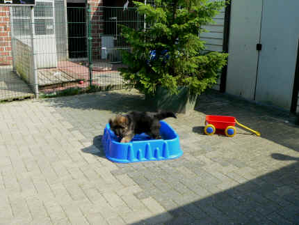 Nach einiger Zeit, gingen meine Augen auf und dann konnte ich viel erleben. Bin herum gekrabbelt, und habe Mama oder meine Geschwister gesucht, die auch herum krabbelten. So nach und nach klappte das immer besser mit dem Laufen und dann hielten wir es nicht mehr in der hinteren Wurfhöhle aus. Meine Mama ging nämlich immer mal wieder weg und das fanden wir nicht so gut. Also habe ich Sie mit meinen Geschwistern gesucht und im vorderen Teil der Wurfhöhle gefunden. Wir kannten die ja wohl , denn wenn Bärbel unsere Höhle sauber machte, legte Sie uns vorne in der ersten Höhle bei Mama hin, die legte sich mittlerweile um mal vor uns Ruhe zu haben dort zum Schlafen hin. Als es Draußen so warm war, das unsere Höhle auch immer wärmer wurde, durften wir nach Draußen. Dort haben wir es uns dann im Auslauf gemütlich gemacht oder im Welpenauslauf auf der Wiese. Doch davon haben wir nicht so viel gehalten, von wegen Gitter vor der Nase. Da haben wir aber laut geschimpft, bis Bärbel mit uns Mitleid bekam und uns erlöste. So durften wir dann auf der großen Wiese herum laufen. Oft waren auch Stephan, Nina, Louis und Chiara da, die mich sofort in Ihr Herz geschlossen haben. Das liegt wohl daran, dass ich etwas mehr Fell als üblich mit bekommen habe. Ich wäre so schön flauschig meinten sie immer. Nachdem sie mich so oft geknuddelt hatten und ich das immer richtig genossen habe, haben die 4 sich entschlossen, mich nach der Tätowierung zu sich zu holen. Da sie ja auch in Geeste wie meine Leute wohnen, sogar ganz in der Nähe, finde ich das natürlich immer ganz toll, denn dann sehe ich ja immer meine Mama, meine Schwester Fenjah die ja bei meinen Leuten bleibt und den Broncor. Fargos geht in eine andere Familie, sonst sind wir hier zu viele Hunde auf Dauer, meint Jürgen. Daher kommen die nun ganz oft und spielen schon viel mit mir, damit ich nicht jammern muss wenn ich von Mama weg muss. So, nun habe ich erst mal genug erzählt, denn ich habe noch so viele Fotos zum Anschauen mit gebracht. Bis zum nächsten Mal dann, euer Falk vom Speichersee |