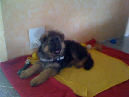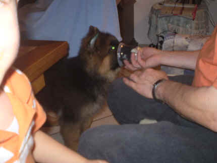 | soll ich in die Füße beißen oder nicht ? | na nu, wo ist denn mein neues "kleines" Herrchen Louis auf ein mal ? | da liege ich schon bei meinem 2 neuen Frauchen und bei Herrchen |