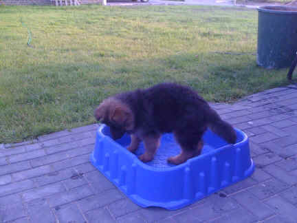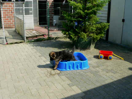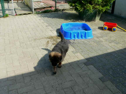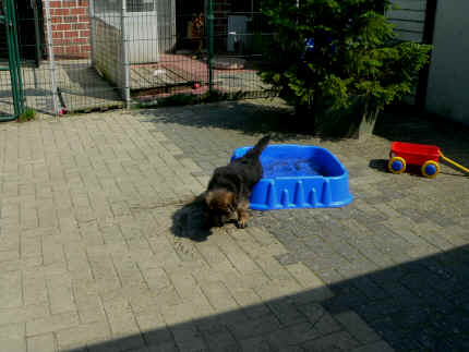 Herrchen Jürgen ein kleines Becken mit Wasser auf gestellt, was wir