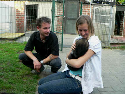 | Fenjah will auch zu mir hin, kann also nicht schlimm gewesen sein | da kommt ja mein neues Frauchen Nina zu mir. Los hole mich hier raus | das hat Mama gehört, oh oh |