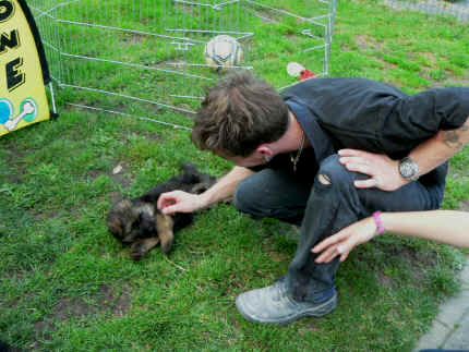 | bei neuem Herrchen auf den Beinen, da mag ich | ganz ehrlich ich schnuppere nur, die Verletzung kommt nicht von mir | oh tat das Zwicken weh Nina ` |
