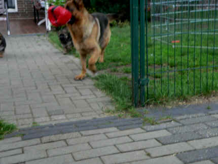 Heute war Bärbel da und hat mir zu geschaut und auch meinen neuen Schlafplatz gezeigt. Vorher lag da immer eine Kuscheldecke, doch nun habe ich ein richtig hübsches Hundebett mit einem zusätzlichen tollen Kissen. Das zeige ich euch bei einem neuen Foto in den nächsten Tagen. Nina hat da auch ein Bällebad. Es sieht zwar anders aus als bei Bärbel, aber ein Tunnel ist da auch und eine Lokomotive als Bällebad. Gehört eigentlich Louis und Chiara aber ich darf da auch zum Spielen rein. Da renne ich erst immer durch den Tunnel wie der Louis auch und hole mir dann einen Ball da raus und knautsche darum. Bärbel hat sich das alles angeschaut und bringt beim nächsten Mal die Digi mit. Ja hier macht das alles ganz toll viel Spaß. Gestern war ich dann wieder bei Bärbel und Jürgen, denn Nina und Stephan mussten kurz weg. Da habe ich dann mit Fargos und Fenjah gespielt und auch mit meiner Mama. Als ich dann in der Nähe von Broncors Auslauf war und die Fenjah gezwickt habe da hat der mich doch tatsächlich angebellt. Der passt schon auf sein Mädchen auf. Er mag die Fenjah sehr gerne, hat Er ja schon von Anfang an. Mich und den Fargos mochte Er ja wohl auch, aber viel lieber die Fenjah und natürlich meine Mama Chandrah. Die hat mich allerdings auch weg geschubst, als ich Sie mal kurz gezwickt habe, dabei wollte ich Ihr doch nur zeigen wie toll meine Zähne funktionieren. So eine Spielverderberin. Da bin ich dann doch lieber wieder zu Fenjah und Fargos hin und habe die geärgert. Aber haben wollten die das auch nicht. Hinterher wollten die Ihre Ruhe haben, da hat Bärbel die Beiden in Ihren Auslauf gepackt und ich bin bei Louis und Bärbel im Garten geblieben. Hier kannte ich natürlich noch alles und bin dann gleich in die Wohnung und ab ins Badezimmer und habe das Wasser etwas verteilt das da immer im Napf steht. Bärbel hat da auch "Pfui" und "Nein" gesagt und schon wusste ich das ich das nicht noch einmal machen durfte. Ja der Ernst des Lebens fängt so langsam an. Bald fahre ich auch mit meinen neuen Leuten und Bärbel und Jürgen mal zum Hundeplatz. Der Stephan will mir ja da auch was bei bringen. Bin ja mal gespannt was da so alles ab läuft. Bis zum nächsten Mal dann, euer Falk vom Speichersee |