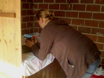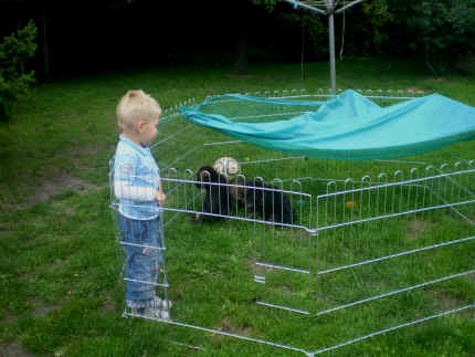 | uns geht es gut, denn Mama passt auf uns auf | während unsere Höhle sauber gemacht wird, warten wir hier | Stephan und Nina knuddeln mit mir herum, die wollen mich später haben |