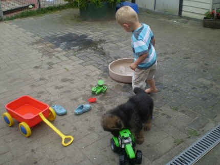 | wann kommt denn endlich das neue Wasser ? | mein kleines Herrchen Louis zeigt das ich auf passen soll |