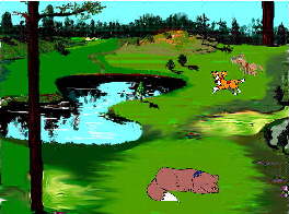 Brücke. Dort sind grüne Wiesen und Hügel, für alle unsere besonderen Tiere.