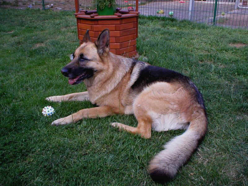 Das ist unsere Wibke v. Haus Babilon, Sie wurde am 28.9.1994 geboren und ist leider am 5.1.2004 von uns gegangen. In den 8 Jahren, in denen Sie bei uns war, hat Sie uns viel Freude bereitet und wir haben 2 schöne Würfe von Ihr hier aufziehen dürfen. Leider wurde Sie sehr krank, so das wir Sie am 5.1. einschläfern lassen mussten. Wir hoffen, dass Sie, wenn Sie über die Regenbogenbrücke gegangen ist, keine Schmerzen mehr haben wird. Wir werden Sie nicht vergessen.