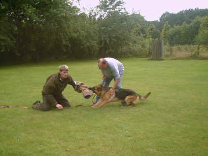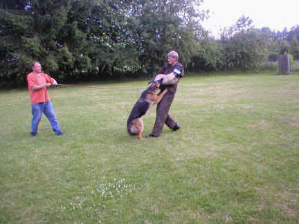 | Helfer Jürgen mit Brisby, innerhalb kurzer Zeit hat er es geschafft, Bris zum starken Hund zu verhelfen | Helfer Jürgen mit Brisby und Jürgen beim Schutzdienst, | Jürgen Trinkaus / Niemeyer mit Broncor beim Schautraining |