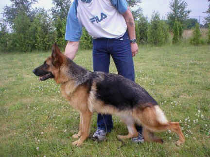 Ich heiße Bärbel und bin 48 Jahre. Geboren bin ich in Wattenscheid, liegt übrigens im Ruhrgebiet. Wir hatten zwar früher keine Deutschen Schäferhunde, dafür aber sehr schöne Katzen. Vor Hunden hatte ich allerdings früher angst, da mich mal ein Hund beißen wollte und ich mich mit einem Satz, was man ja nicht machen soll in ein Rosenstrauch. Wie ich da ausgesehen habe, könnt Ihr euch ja sicherlich denken. Von da ab machte ich um jeden Hund einen großen Bogen, bis zu dem Tag wo ich Jürgen, meinen späteren Mann kennen lernte. Ich habe Krankenschwester gelernt und traf mich mit meinen Freundinnen in dem kleinen Wirtshaus in der Nähe vom Krankenhaus, wo ich im Schwesternwohnheim zu der Zeit wohnte. Da lernte ich dann auch Jürgen kennen. Jürgen ist gelernter Schlosser und hat später noch alle Schweißerprüfungen abgelegt. Er ist 52 Jahre. Ja, Jürgen hatte eine Deutsche Schäferhündin mit dem Namen Anka vom Gregorenhof. Zuerst bekam ich einen gewaltigen Schreck, als ich das erste Mal Anka kennen lernte. Sie war sehr lieb und wir verstanden uns später super gut. Von da ab war ich in den Deutschen Schäferhund verliebt. Wir sind dann auch viel zu den Hundeplätzen gefahren. 1976 haben wir dann auch geheiratet und im Dezember kam unsere Tochter Nicole zur Welt. Mittlerweile gesellte sich zu Anka noch Condo vom Südpark hinzu, den man uns leider mit 1 1/2 Jahren vergiftet hatte. 4 Jahre später kam dann unser Sohn Stephan dazu. Zwei Jahre später zogen wir nach Geeste, ins Emsland, wo wir gebaut haben. Hier ging es dann weiter mit der Hundehaltung und später dann auch der Zucht. So ging es dann weiter : Wibke bekamen wir ja von unserem Freund Gerd zur Ausbildung und zur späteren Aufzucht seiner Welpen. Aus diesem Wurf suchten wir uns unsere Anka vom Schepsdorfer - Wald aus und Gerd überließ uns auch Wibke. Da mir die Aufzucht der Welpen so gut gefiel, überlegten wie uns auch zu züchten. Da musste natürlich ein geschützter Zwingername her. Da wir sehr gerne zum Speichersee mit den Kindern spazieren gingen, kam uns der Gedanke, das wir den Zwingernamen auf " Zwinger vom Speichersee" schützen lassen würden. Gesagt, getan, gleich am anderen Tag, meldete wir unseren Zwingernamen beim Verein für Deutsche Schäferhunde an. Der Zwingername wurde auf meinem Namen geschrieben, da Jürgen aus Zeitgründen das mir überlassen hat. Im nächsten Jahr kam dann auch unser eigener Wurf " vom Speichersee " zur Welt. Angy, Akira und Ayke, drei quicklebendige Hündinnen, die gut heran wuchsen. Leider waren die Welpen so schwer, besonders Ayke, sodass der Tierarzt einen Kaiserschnitt machen musste. Unsere Wibke war auch mittlerweile 7 Jahre und wir entschlossen uns, nicht mehr mit Ihr zu züchten. Zwischendurch haben wir auch andere Hunde gehabt, zur Aufzucht, aber auch als Miteigentümer und zur weiteren Ausbildung. Mit unserer Ausbildungshündin Junette van Noort, bei der ich dann auch Miteigentümerin geworden bin, machten wir dann in diesem Jahr unseren 2. eigenen Wurf hier in Geeste. Der Wurf kam am 08.08. zur Welt. 2 Rüden und 3 Hündinnen. Vater war der Ausbildungshund Salo vom Steigerhof. der Wurf scheint vielversprechend zu sein, denn wir werden wie es aussieht, die beiden Rüden und 1 Hündin behalten. Baron ist doch noch später von uns gegangen, aber Broncor bleibt für immer bei uns. Bayra ist aber jetzt in Belgien bei unserem Freund und Zuchtrichter Carl. Sie hat es dort super gut. Leider ging unsere Hündin Wibke im Januar nach schwerer Krankheit über die Regenbogenbrücke. Sie fehlt uns sehr und ist nicht zu ersetzen. Sie war eine tolle Hündin, hat auf unser Haus, auf jeden neuen Aufzucht - Welpen aufgepasst, das denen nichts passierte und uns auch nichts. Dann hatten wir da noch unsere Brenda, die wir mit 8 Wochen zu uns holten. Wir haben Sie für Prüfungen und Schauen mit unseren Freunden, Karsten Bischoff, Heinz Groenhoff, Helmut Osteresch und den Freunden aus Rhede und den Helfern der umliegenden Hundeplätze vorbereitet. Ihnen allen vielen, vielen Dank, denn Brenda hat auf der diesjährigen SHZS in Karlsruhe 2004 in der JGHKL sg 4 bei Herrn Karl - Heinz Zygadto gemacht. Alle Mühe und Anstrengungen, oft auch beim strömenden Regen haben sich gelohnt. Auf den 1. Wurf, von dem wir uns sehr viel versprechen, waren wir schon gespannt. Das würde dann unser C - Wurf werden. Aus diesem Wurf haben wir ebenfalls tolle Welpen bekommen. Chandrah die bei uns blieb, dann Chipsy die nun in Indien bei Vishal steht, der Chayron der in Kalifornien bei unserem Freund Charles steht. Condor ging nach Belgien zu unseren Freunden Carl und Chris. Chinocc ging zu einem Arbeitskollegen meines Mannes. Unsere Chandrah hat nun auch schon einen Wurf gehabt, aber dieser ging an unseren Freund und Richter Jürgen Wodtke. Mit Chandrah planen nun wir selber einen Wurf nach Djenges Kahn von Sante`s Home. Zu unseren Hündinnen kam dann noch Brisby van Noort dazu. Die gehörte Daniela aus München und mir zusammen. Wir verstehen uns sehr gut. Brisby wurde für die SchH 1 - Prüfung ausgebildet, die AD und BH hatten wir schon mit gutem Erfolg abgeschlossen. Als Brisby gekört wurde, haben wir Sie nach unseren Rüden Broncor vom Speichersee belegen lassen. Aus diesen Wurf haben wir ebenfalls tolle Welpen bekommen. Dagoh, Daryx, Dayven, Darah, Dayrah, Dixie. Dagoh und Dayrah blieben aus dem Wurf bei uns zu Hause stehen. Weitere Würfe folgten. Mit Chandrah und Djenges Kahn wurde dann der E - Wurf geplant, aus denen wunderschöne, temperamentvolle Welpen kamen. Alle außer einer Hündin gingen nachdem sie alt genug waren in Züchterhände über, Emma, die wir eigentlich am Anfang Ebbah nannten ist in unserer OG geblieben. Am Anfang hatte Sie etwas viel Fell mit bekommen was im zunehmenden Alter aber weniger wurde. Auch Sie ist anatomisch eine sehr schöne Hündin geworden. Da uns dieser Wurf sehr gut gefiel, haben wir uns zu einer Wurfwiederholung entschlossen. Unser F- Wurf wird um den 13. Juni 2009 g