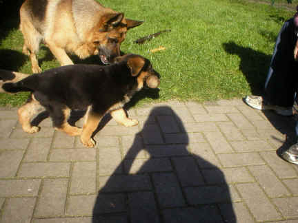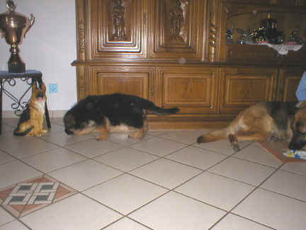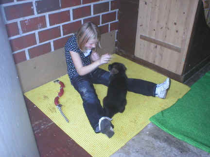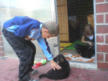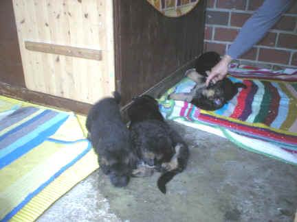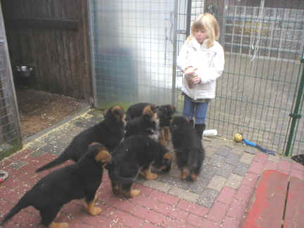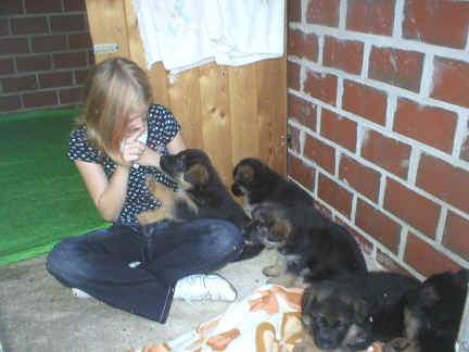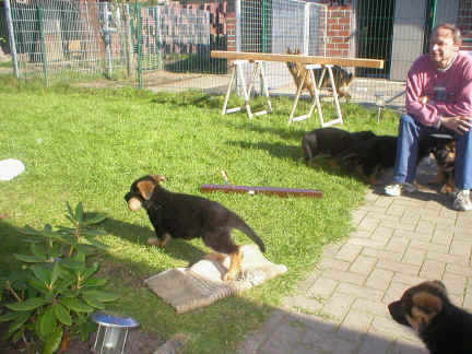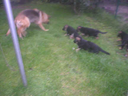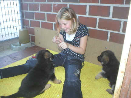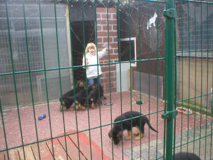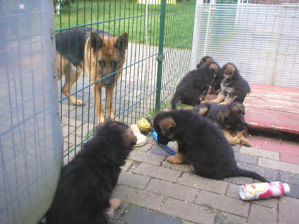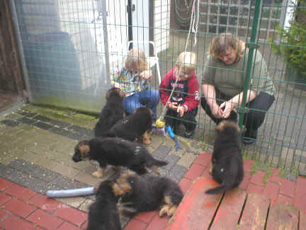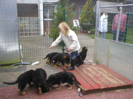 | ich laufe lieber wieder zu den anderen ( Darah) | hallo Bärbel darf ich doch wieder raus? ( Darah) | kommt kleine Welpen, es gibt Leckerlis ( Saskia ) |