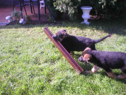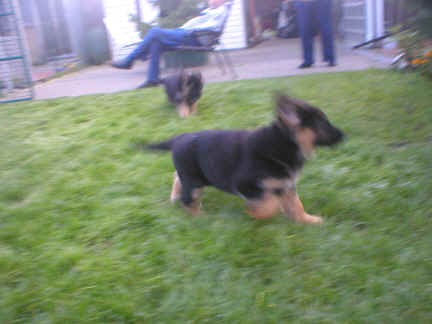| man ist das hier toll auf dem Rasen ( ^6 Wochen alt ) | da kann man so richtig schnell rennen ( Darah) | was sollen wir jetzt aus hecken ? Lasst uns überlegen |