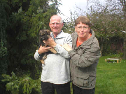 Wie versprochen geht es nun schnell mit der Story weiter, und dann bei Chandrah, Brisby und Broncor. Es gibt eigentlich nichts Neues zu berichten, außer das gestern Abend Besuch kam und wir wieder in die Wohnung durften. Die beiden Freunde aus Holland haben uns alle sehen wollen und fanden das wir tolle Hunde sind. Angst haben wir keine gezeigt und sind gleich zu ihnen hin. Dann ab durch die Wohnung, erst mal ins Badezimmer wo der Wassernapf steht. Man hat ja auch mal Durst ! Was war das? Die Bürotür zu ? Warum das denn ? Bestimmt weil wir das letzte Mal am Kabel geknabbert haben. Lag aber nur daran, das da keine Knabberknochen lagen. Den hatte der Droll, der ja nun Dagoh heißt, im Wohnzimmer versteckt. Dann rief Jürgen uns wieder, sollten wir hin oder nicht? Als dann noch Bärbels Pfeifen kam, sind wir aber los, damit die Freunde aus Holland uns noch einmal ansehen konnten. Anschließend ging es zu den Ausläufen, sind wir natürlich alleine hin gerannt, denn wir wissen ja wo wir hin müssen. Unsere Mama hat ja auch gewartet und wollte gleich gekrault werden von denen wie immer. Zuerst hat sie und Broncor kurz gebellt und dann war Ruhe. Wenn unsere Leute dabei sind, kann uns ja nichts passieren, das wissen sie. Später bekamen wir noch unser Futter denn wir hatten noch nicht die letzte Mahlzeit bekommen, damit wir nicht wie "Kugeln" aussahen. Man hatten wir Hunger, die Näpfe waren ruck zuck leer und wir hätten gerne noch mehr gehabt. Also warten bis die Nachtruhe eingeläutet wird, dann bekommen wir nämlich noch Knabberstangen damit wir die Nacht schön ruhig sind. Schlafen tun wir aber allerdings auch noch, keine angst. In der Nacht sind wir ruhig, damit die Nachbar auch alle schlafen können. Nur von einer Straße weiter, da heult ein anderer einsamer Welpe fast die ganze Nacht herum. Der hat keine Geschwister bei sich wie wir. Da sind wir ja richtig froh darüber, auch wenn es nun nicht mehr lange dauert. So, nun genug für heute, schon wieder so spät geworden, denn unsere Leute haben noch viel Fleisch für uns alle gekauft. Die Großen bekommen natürlich auch was ab, wir wollen ja nicht so sein. Bis zum nächsten Mal, die Speichersee - Welpen |