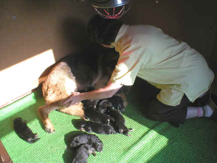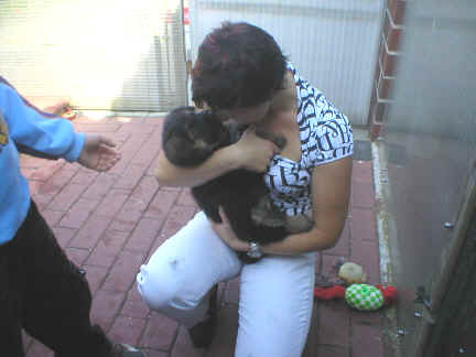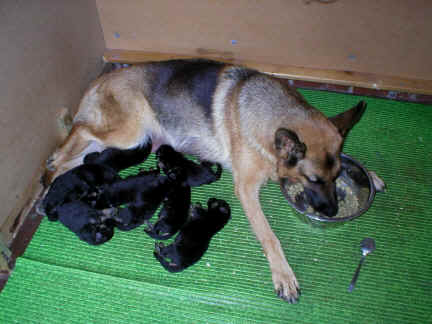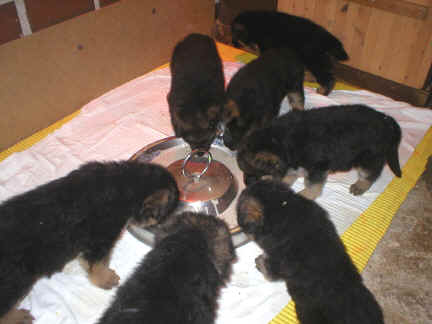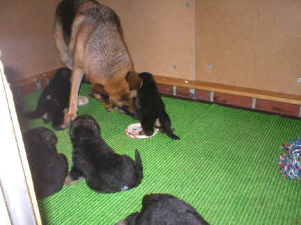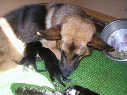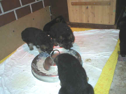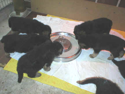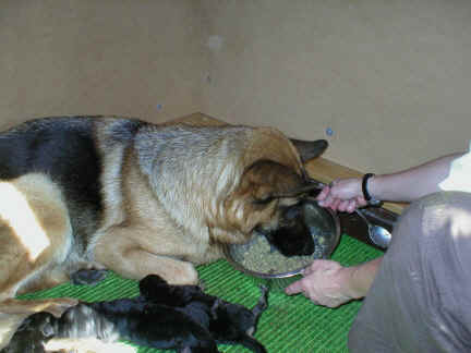 | die glückliche Mama und Ihre Kinderschar | na kleiner Welpe, wie geht es Dir, einmal knuddeln bitte | ich darf natürlich auch nicht zu kurz kommen, Herchen hält mir sogar den Napf hin |