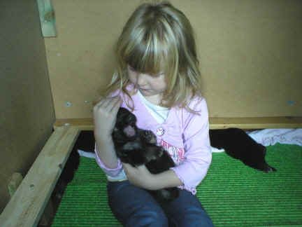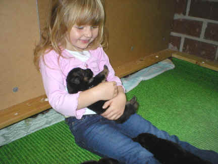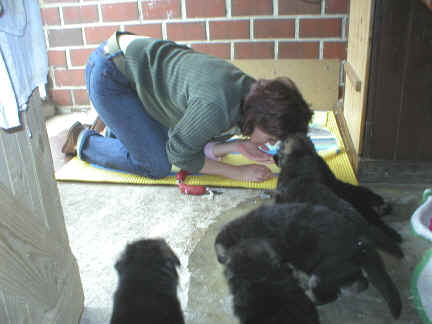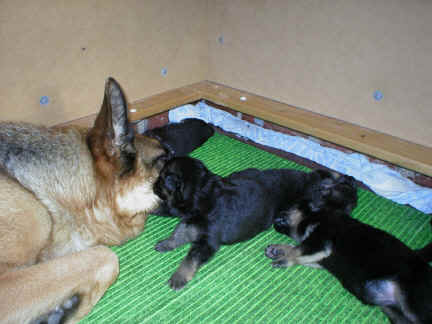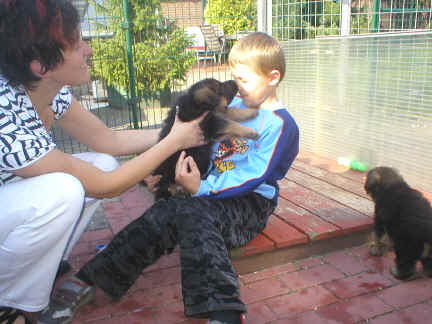 | Du darfst meine Welpen knuddeln, dafür bekommst Du noch ein Küsschen | na meine Kleinen, was ist denn ? | autsch, nicht zwicken |