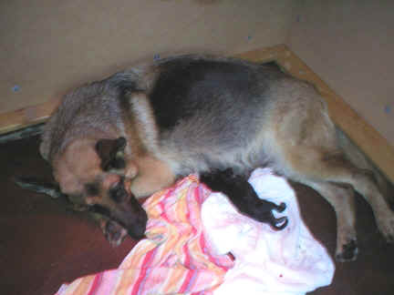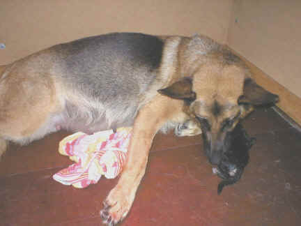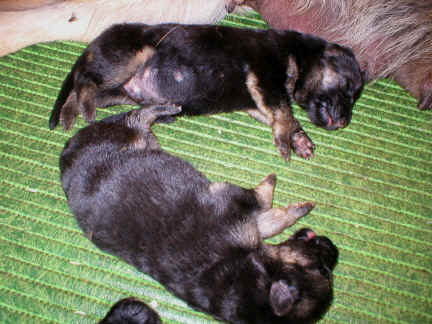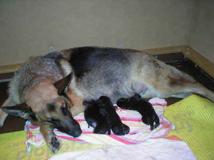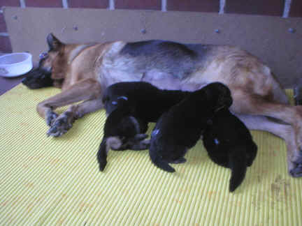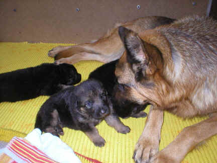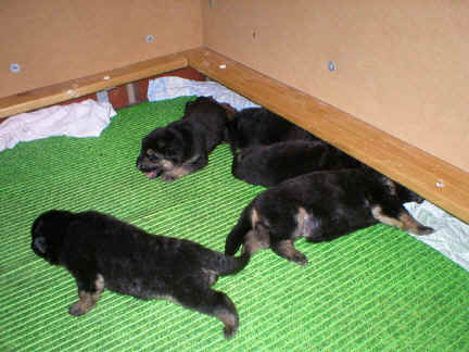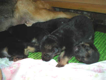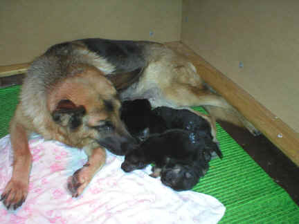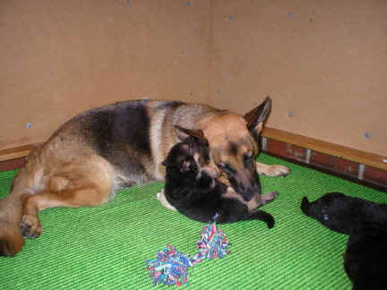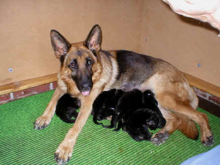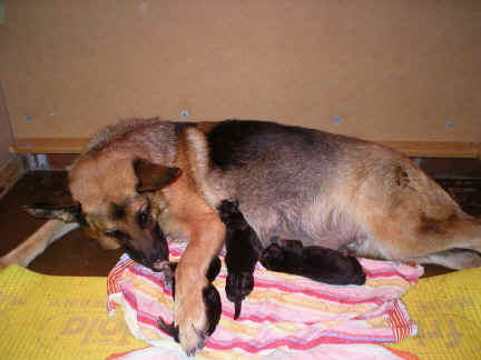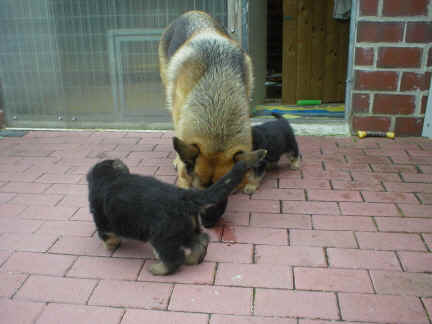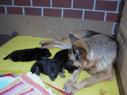 | Brisby und Ihre Welpen am 2. Tag | und hier mit 4 Wochen |