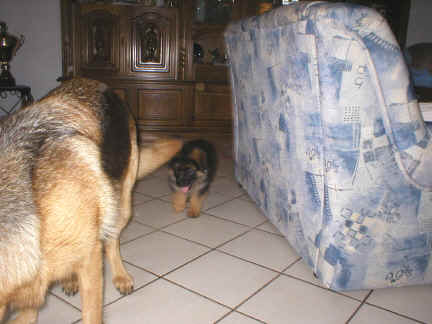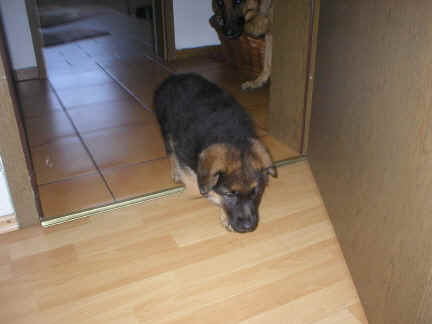 auf unseren Beinchen durch den Wurfraum und auch schon vorne wo die Mama